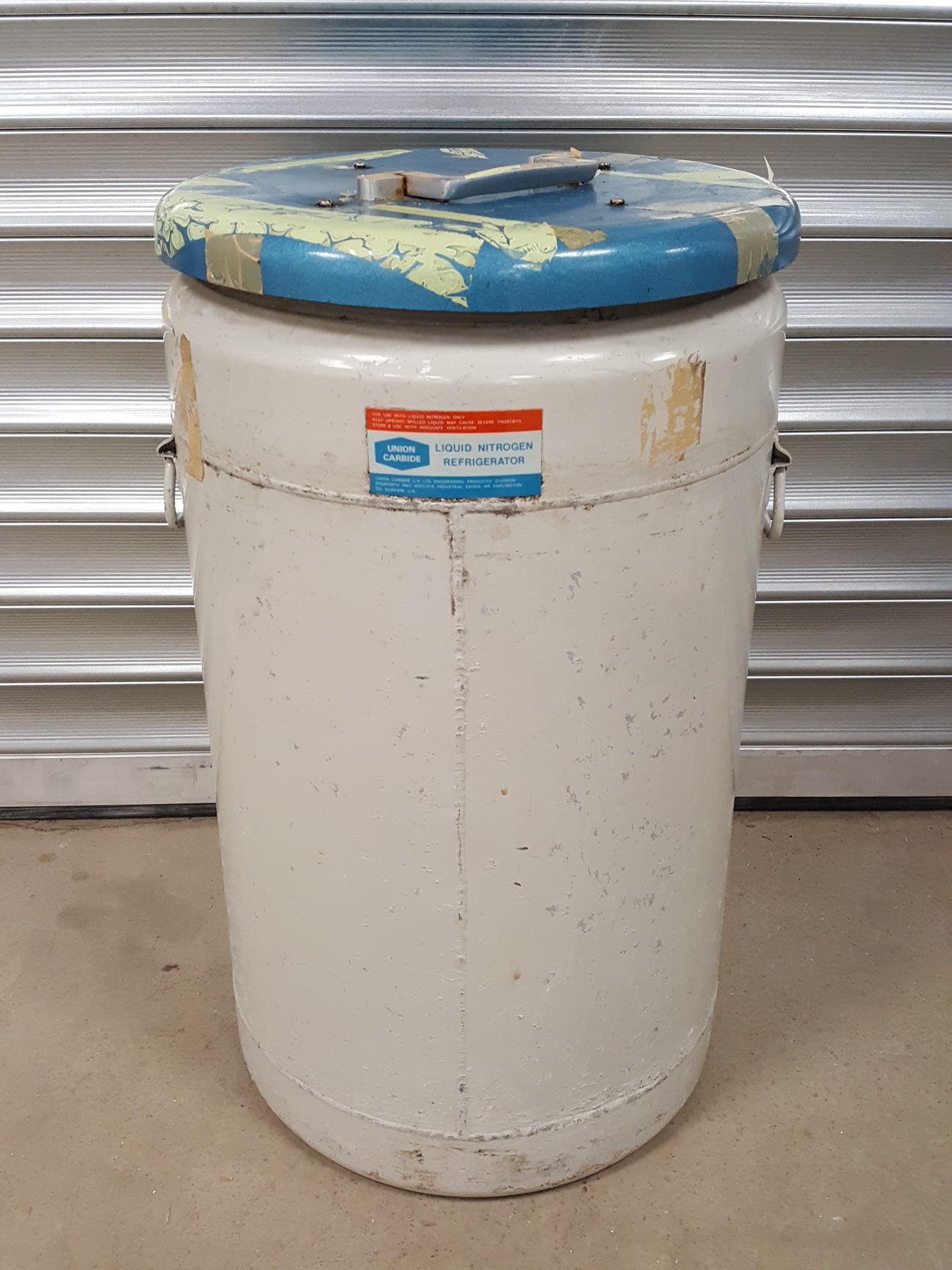 Used Union Carbide Liquid Nitrogen Refrigerator Tank Dewar With Sample Racking Lab For Sale Id 68645 Lab Merchant